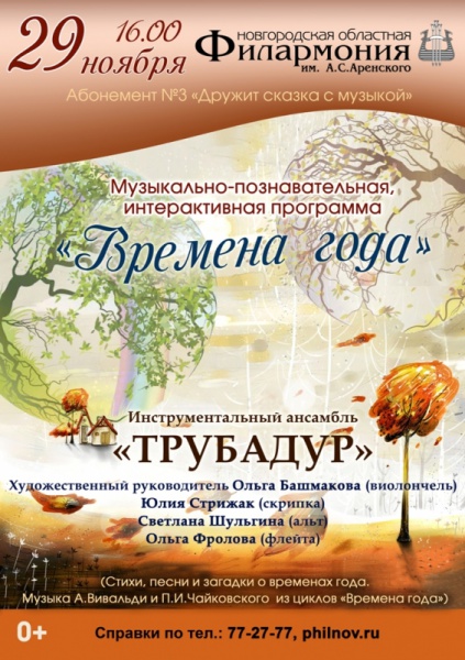 Музыкально-познавательная, интерактивная программа "Времена года" инструментального ансамбля "Трубадур".