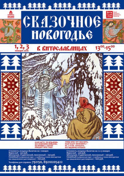 Новгородский музей-заповедник приглашает в Музей народного деревянного зодчества на праздничное мероприятие «Сказочное Новогодье в Витославлицах». Гости праздника отправятся в увлекательное путешествие по сказочной деревне, где смогут окунуться в мир деревенской культуры с его обычаями и традициями и встретиться с героями любимых с детства сказок: Емелей, Машей и Медведем, Котом Ученым.