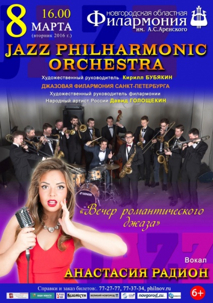 JAZZ PHILHARMONIC ORCHESTRA – мощный концертный оркестр из Санкт-Петербурга, продолжающий традиции знаменитых биг-бэндов Тэда Джонса-Мела Льюиса, Каунта Бейси и Куинси Джонса. Каждый из входящих в его состав музыкантов является яркой личностью, вносящей в общее звучание оркестра свой индивидуальный голос. Лидером коллектива является саксофонист Кирилл Бубякин.