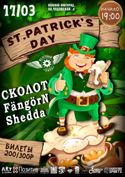 «День Святого Патрика в Великом Новгороде - главный кельтский фолк фестиваль в нашем городе, пройдёт 17го марта в клубе «Железный Папа»