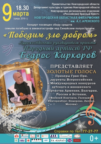9 марта на сцене областной филармонии состоится концерт, который посвящен сбору средств семьям погибших в авиакатастрофе над Синайским полуостровом