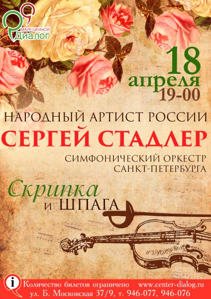 Новая оригинальная концертная программа Народного артиста России Сергея Стадлера продолжает музыкальный рассказ о виртуозах скрипки и клинка – о тех, кто одинаково хорошо умел владеть смычком и шпагой, удивительным образом сочетая в себе склонность к авантюризму, военной дисциплине и сочинительству. Программа "Скрипка и шпага", включает в себя произведения композиторов, принадлежащих разным эпохам, национальностям и государствам, но черпающих вдохновение в военной романтике: Людвиг ван Бетховен, Вольфганг Амадей Моцарт, Луиджи Боккерини, Джузеппе Тартини и Шевалье де Сен-Жорж.