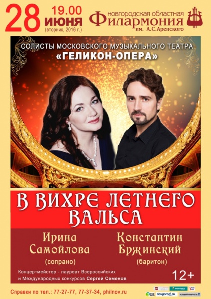 А кружить нас в этом вихре майского вальса будут звезды мирового оперного олимпа, солисты Московского музыкального театра «ГЕЛИКОН-ОПЕРА» под управлением Дмитрия Бертмана: Константин Бржинский (баритон) и Ирина Самойлова (сопрано).