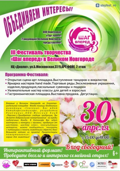Шаг вперед -это единая арт площадка, где объединены интересы творческих людей города и области.