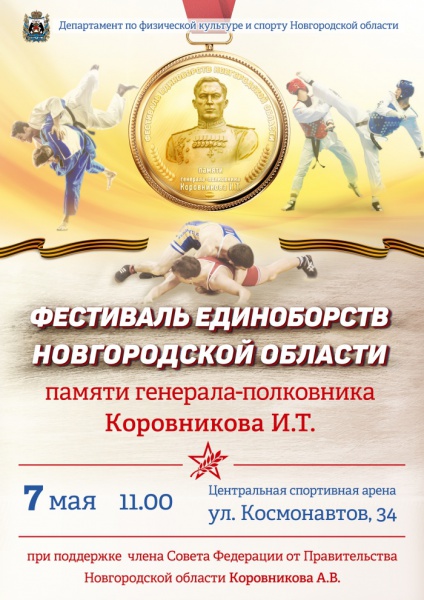 В Великом Новгороде впервые пройдет областной фестиваль единоборств памяти освободителя г. Великий Новгород генерала –полковника Ивана Терентьевича Коровникова.