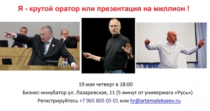 19 мая Бизнес-тренер Артем Алексеев приглашает вас принять участие в тренинге "Я - крутой оратор или презентация на миллион".