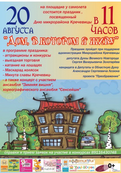 20 августа на площадке у самолета состоится День микрорайона Кречевицы - 2016.