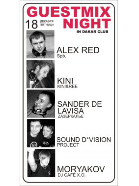 Первым 100 посетителям достается MP3 CD с музыкальными подарками от каждого приглашенного ди-джея, + шампанское бонусом от клуба Dakar.