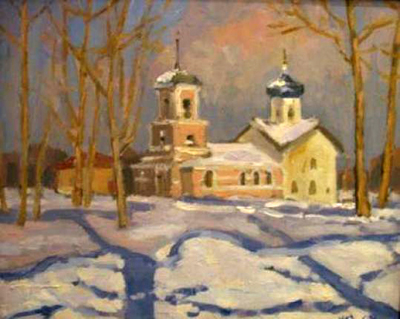 Великолепие храмовой архитектуры Великого Новгорода, Сергиева Посада, Осташкова, Старой Руссы и других русских городов с большим мастерством отражено в живописных работах.