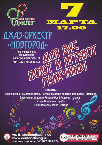 Джаз оркестр "Новгород" с концертной программой "Для вас поют и играют мужчины"