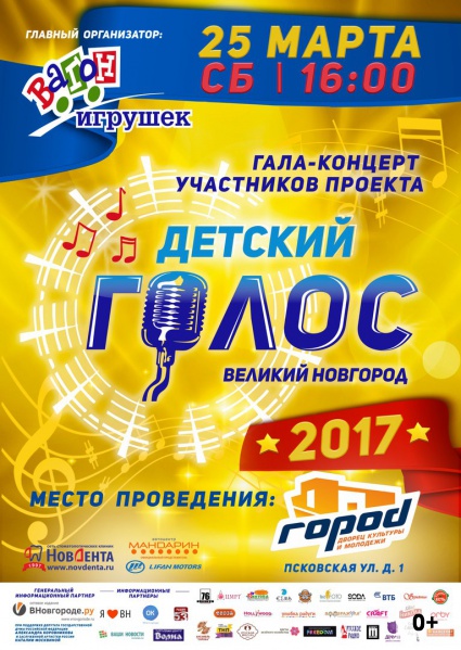 «Детский голос» в Великом Новгороде – это абсолютно новое событие в культурной жизни города. Его отличают формат проведения, многообразие стилистик и исполнительных особенностей участников, интрига соревнования, сочетание зрелищности и высокого художественного уровня исполнения. Проект призван популяризации музыкальной культуры и широкому публичному признанию таланта юных вокалистов.