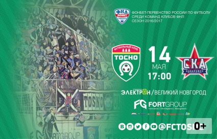 14 мая ФК «Тосно» проведёт Матч 37 тура ФОНБЕТ на стадионе «Электрон» в Великом Новгороде.