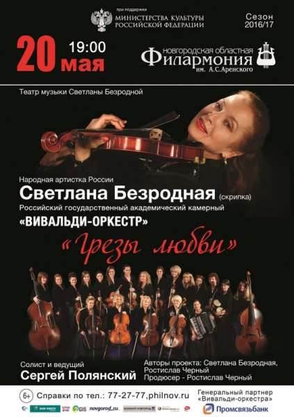 Шлягеры ХХ века в исполнении «Вивальди-оркестра» под управлением Светланы Безродной прозвучат в стилистике максимально приближенной к манере игры известных ансамблей мира середины прошлого столетия. По уже сложившейся традиции Сергей Полянский предстанет перед вами в двух ипостасях – солиста-вокалиста и ведущего программы.