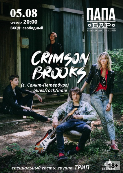 Поддержать Сrimson Brooks придут новгородцы с говорящим названием ТРИП. Можно долго пытаться описать то, что они играют, но поскольку говорить о музыке это то же, что и танцевать об архитектуре, предлагаем вам просто нырнуть в омут и уйти в ТРИП.