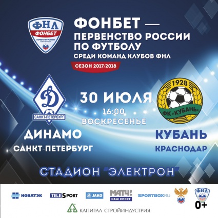 Матч 5 тура ФОНБЕТ-Первенства России по футболу между клубами «Динамо-Спб» и «Кубань» (Краснодар)