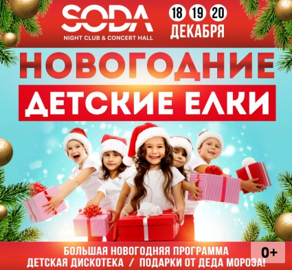 Большая Новогодняя программа, детская дискотека, подарки от Деда Мороза.