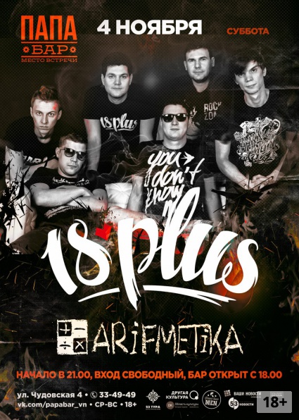 Отличительной чертой 18 PLUS является необычное, для такой музыки, звучание вокала, сильные и понятные тексты в которых затрагиваются близкие и актуальные темы для слушателя любого поколения.