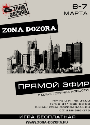 Для предварительной регистрации необходимо выслать на е-mail: zona-dozora@mail.ru