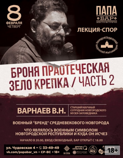 Лекция-спор со старшим научным сотрудником Новгородского музея-заповедника, Варнаевым Владимиром Николаевичем.