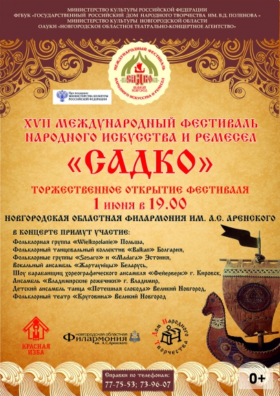 19:00-21:00 - открытие XVII Международного фестиваля народного искусства и ремесел «Садко». В фестивале примут участие творческие коллективы, пропагандирующие различные жанры народной культуры в аутентичной и сценической формах: