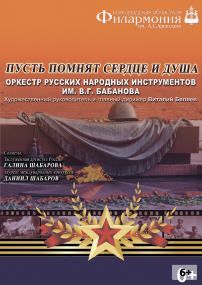 Прозвучат тематические музыкальные произведения, лучшие военные и послевоенные песни в исполнении Заслуженной артистки России Галины Шабаровой и лауреата международных конкурсов Даниила Шабарова в сопровождении оркестра русских народных инструментов им. В.Г.Бабанова.