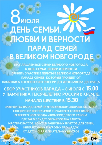 В рамках программы мероприятий, посвященных всероссийскому празднику - Дню семьи, любви и верности, 8 июля в Великом Новгороде впервые пройдет «Парад семей»