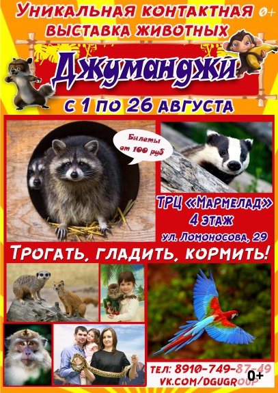Вас ждут: питоны, обезьянки, дрессированный крокодил Гена, забавные еноты, павлин, попугаи Ара, мангусты и многие другие.