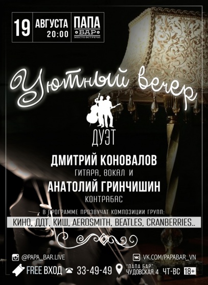 Дуэт Дмитрия Коновалова (гитара, вокал) и Анатолия Гринчишина (контрабас)