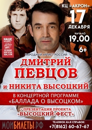 Никита Высоцкий и народный артист России Дмитрий Певцов представят концертную программу, созданную в честь 80-летия великого поэта, композитора и исполнителя Владимира Семеновича Высоцкого