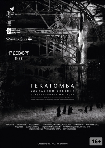 «Гекатомба. Блокадный дневник» — это мистерия, главным героем которой становится город, увиденный глазами архитектора Льва Ильина: «Ленинград блокады суров и прекрасен, как классическая трагедия…». Так же, как в античной трагедии хор всегда остается на сцене, блокадные люди — известные и неизвестные, взрослые и дети — остаются на сцене своего города в самые тяжелые дни его существования. В спектакле истории ленинградцев и образы блокады возникают, поражая зрителей своей пронзительной достоверностью.