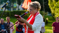 — Продолжается государственный переворот. Угробили промышленность, теперь взялись за социальную сферу. Все права будут отобраны в ближайшее время, потому что у руля страны стоят люди, ориентированные на Запад. <...> Эти люди создали мощный репрессивный аппарат, мощный законодательный заслон, — заявила журналист Галина Ярцева. — Кукиш — орудие пролетариата! Прийти на выборы, чего не ожидает партия власти, и проголосовать против неё. Передавайте это своим детям, внукам и соседям. Отстоим город, отстоим страну. Мы их выдавим из власти! Встаньте за себя!