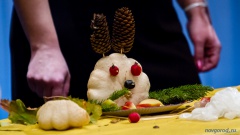 Затем девушки соревновались в конкурсе рукоделия «Осенняя фантазия». Из листьев, ягод, шишек и овощей участницам за три минуты необходимо было собрать композицию и придумать ей название.
