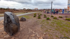 На спонсорские средства в сквере установили скульптурную композицию. Она состоит из двух валунов...