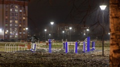 До этого парк был погружён в темноту, что способствовало тому, что на скейт-площадке выломали скамейки.