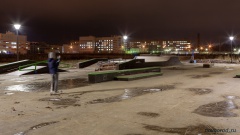 На скейт-площадке теперь тоже светло, но скамейки так и лежат по периметру. В первоначальном эскизе 2017 года площадка размещалась под окнами жилых домов. Но по просьбе жителей была сдвинута дальше. Помимо отсутствия освещения, площадка была окружена отвалами грунта, что ограничивало видимость и способствовало безнаказанности вандалов.