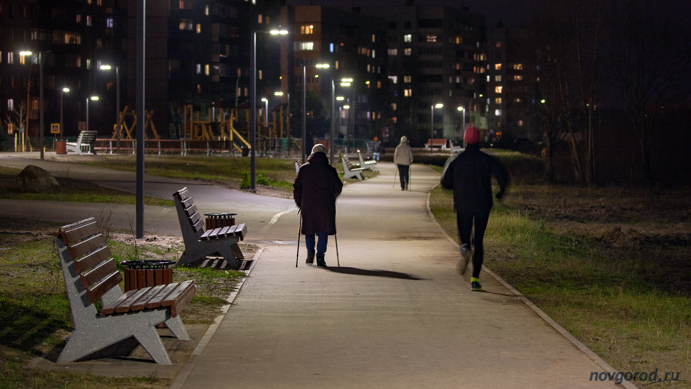 Освещение подключили в первых числах ноября. В некоторых местах фонари пришлось сместить в сторону от дорожек. Подрядчик сослался на трубу газопровода. Всего установлено 65 светильников.