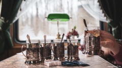 Пассажиров угощали чаем в фирменных подстаканниках.