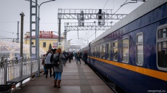 Погода не располагала к прогулкам, но праздничная атмосфера была создана прямо на вокзале.