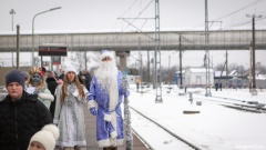 Маленьких пассажиров поздравляли Дед Мороз и Снегурочка, а также символы уходящего и наступившего года.