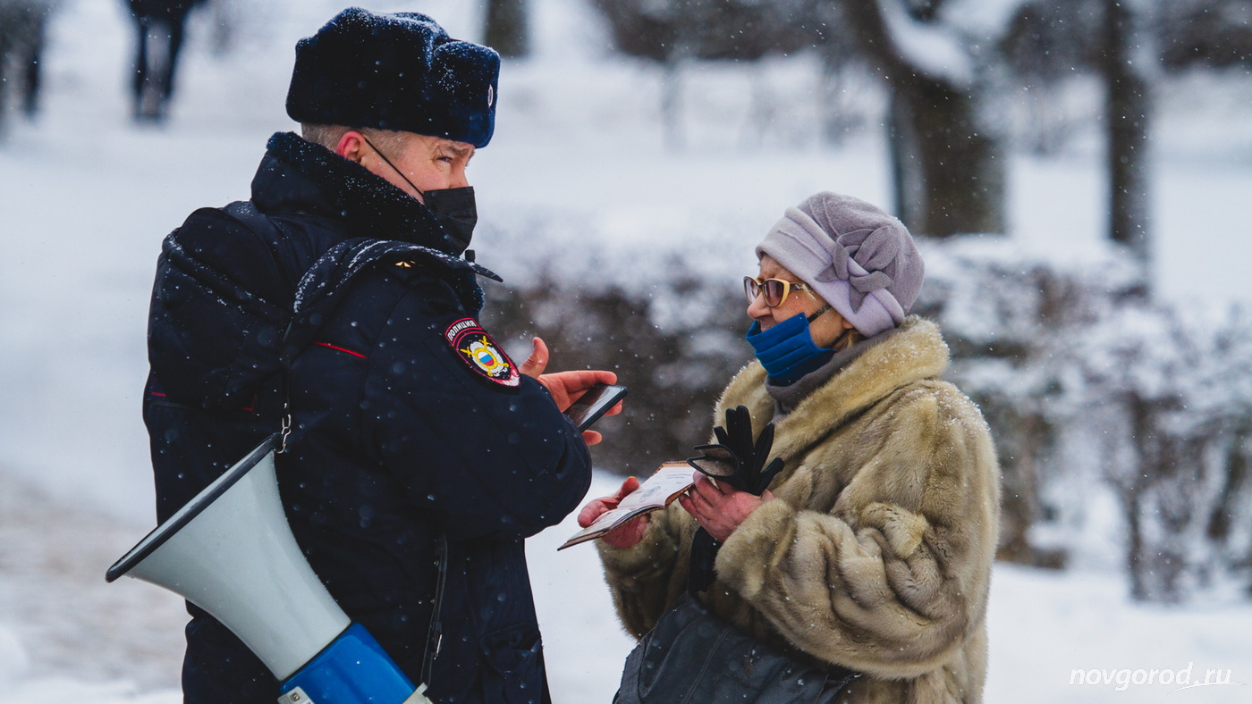 Собираться у памятника Петру I новгородцы стали ближе к 12:00. Остальные подошли чуть позже. Стоит отметить, что новгородские проправительственные СМИ опубликовали кадры с мероприятия, снятые до полудня. Так они преподносили информацию о том, что на митинг мало кто пришёл.