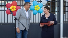 На открытии Сергей Бусурин перерезал символическую красную ленточку вместе с одной из воспитанниц детского сада.