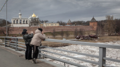 Новгородцы с удовольствием приходят посмотреть на движущийся по течению лёд и послушать его звуки.