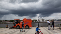 Уборка новой набережной проводится не только вручную.