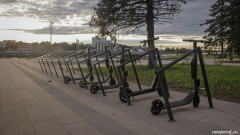 Велопарковка в субботу вечером была занята только электросамокатами.
